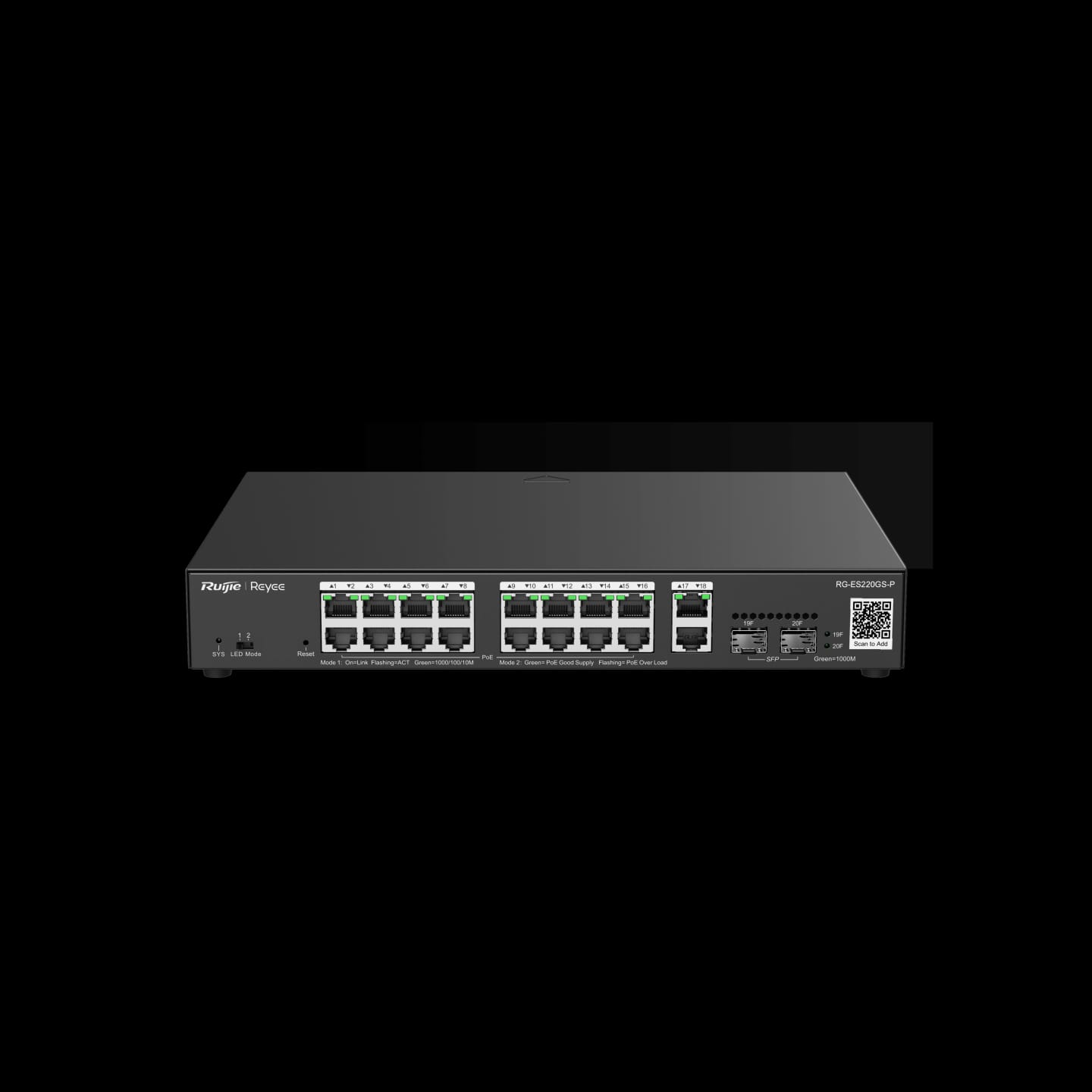 RUİJİE-REYEE RG-ES220GS-P 16XGE-2XGE/SFP-2XGE UPLİNK 250W POE SWİTCH